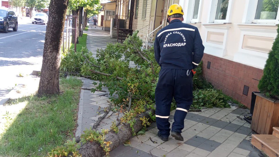 Краснодарские спасатели убрали упавшие из-за сильного ветра деревья по 15 адресам