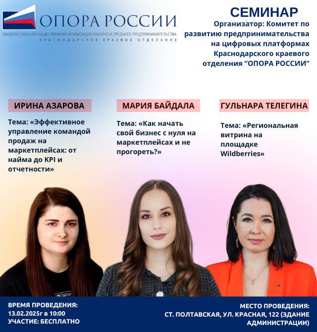 Для кого: — для владельцев оффлайн бизнеса; — для начинающих продавцов на маркетплейсах; — для самозанятых; — для опытных селлеров Где: ст Полтавская, Ул.