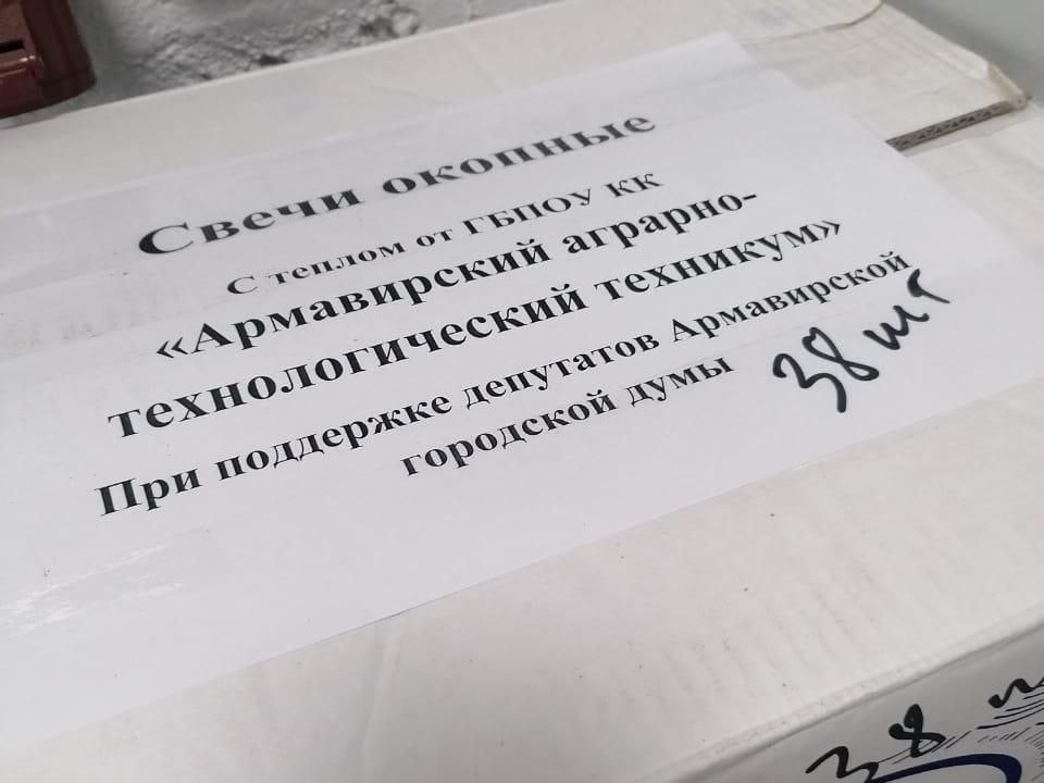 На одной из встреч депутатов Армавирской городской Думы Щербы Юрия Сергеевича – член партии «Единая Россия» и Евтушенко Марка Владимировича – член партии «Гражданская Сила», с молодежью избирательного округа, к молодым депутатам обратилась инициативная группа студентов Аграрно-технологического техникума с просьбой об оказании помощи в приобретении парафина для изготовления окопных свечей для участников СВО. Инициативу молодежи депутаты, конечно же, поддержали. На сегодняшний день налажено производство таких свечей в большом количестве и уже была осуществлена первая их отправка в зону СВО.