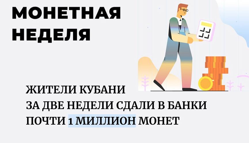 – Жители нашего края приняли активное участие в Монетной неделе. В итоге собрали почти на полтора миллиона рублей больше, чем в прошлом году. Такие акции не только помогают вернуть в активный оборот металлические деньги. Для граждан это еще и отличный способ оптимизировать свой бюджет: получить на банковский счет или банкнотами сумму, которая долго копилась мелочью и никак не использовалась, – отметил первый заместитель министра экономики Краснодарского края Игорь Красавин.