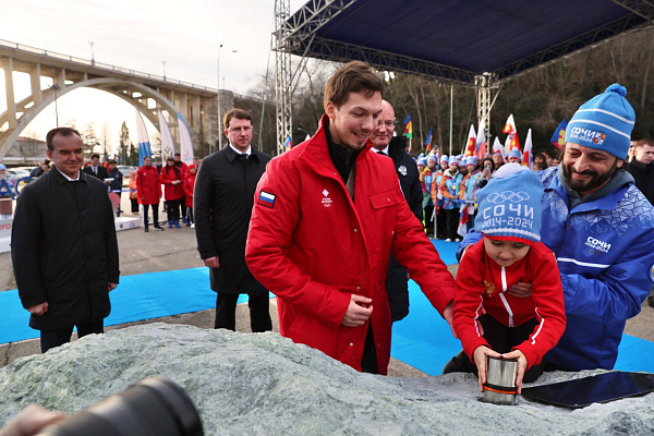 В торжественной церемонии приняли участие заместитель председателя Правительства РФ Дмитрий Чернышенко, губернатор Краснодарского края Вениамин Кондратьев, глава Сочи Алексей Копайгородский, а также спортсмены-олимпийцы,